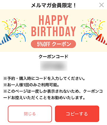 誕生日月に入ってからでもメルマガの受信設定をオンにすれば、誕生日クーポンを受け取れる可能性があります。諦めずにぜひ一度試してみてください。