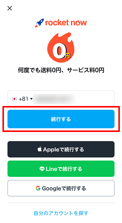 Apple・LINE・Googleアカウントでも続行可能です。