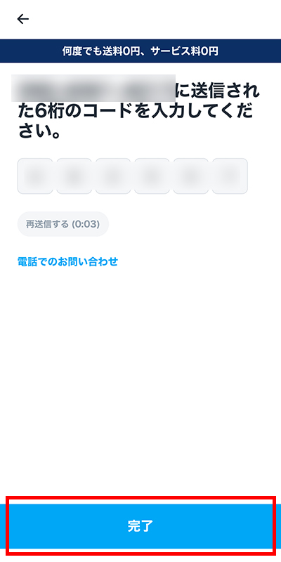スマートフォンのメッセージに送られてきたログイン認証コードを入力して「完了」ボタンを押します。